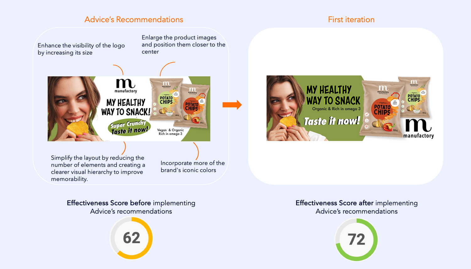 Our new feature Advice simplifies complex effectiveness data into clear, actionable recommendations, helping marketers optimize their creative assets and boost campaign effectiveness — quickly and effortlessly. Powered by AI trained on expert insights, Advice delivers guidance within minutes, enabling smarter decisions without limits.