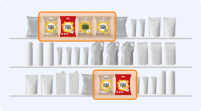 Compare layout performance using attention-based benchmarks across brands, segments, or competitors. Identify strengths, spot missed opportunities, and present shelf concepts that are proven to perform in a crowded retail environment.
